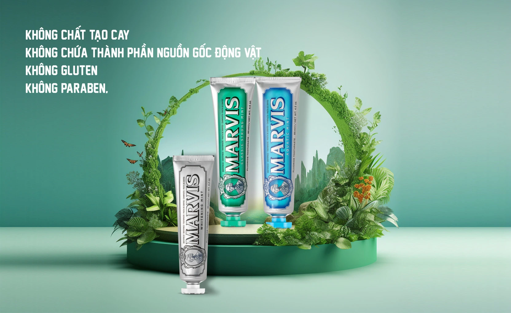 Đặc biệt, Marvis là sản phẩm thuần chay, không chất tạo cay, không gluten, không paraben, không chứa florua. Điều này đảm bảm phù hợp với mọi đối tượng, kể cả những ai có yêu cầu chặt chẽ về chất lượng và tính an toàn của sản phẩm
